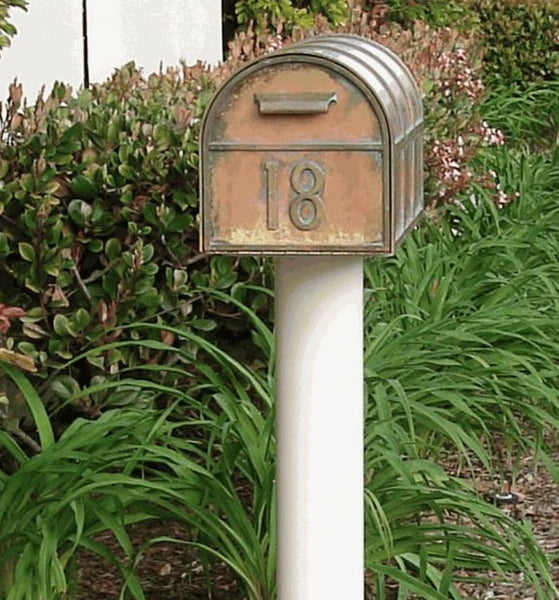 Customized brass numbers are available to be spot welded to your Streetscape mailbox. These numbers are crafted from the same heavy gauge solid brass as the mailboxes and feature the same natural brass finish. Each mailbox can accommodate up to five numbers (welded to the door). Enter your street numbers in the personalization box to order during the checkout process.