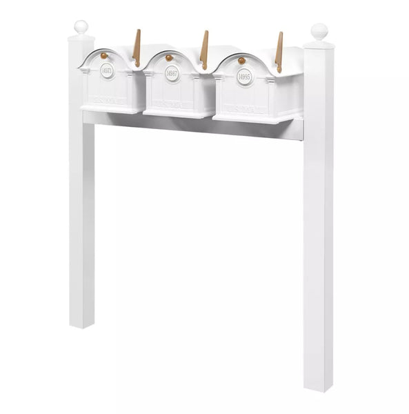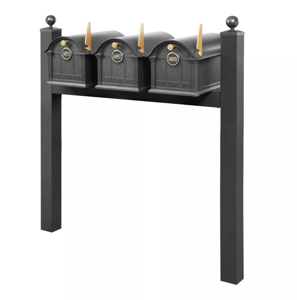 The sturdy triple-mount post securely supports all three mailboxes in a clean, coordinated arrangement. It delivers exceptional stability while creating a unified, streamlined appearance at your property’s entrance.